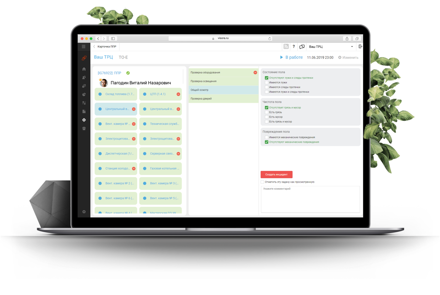 чек-листов с учетом маршрутов обходов, возможность указать референсные значения и порядок проведения осмотра