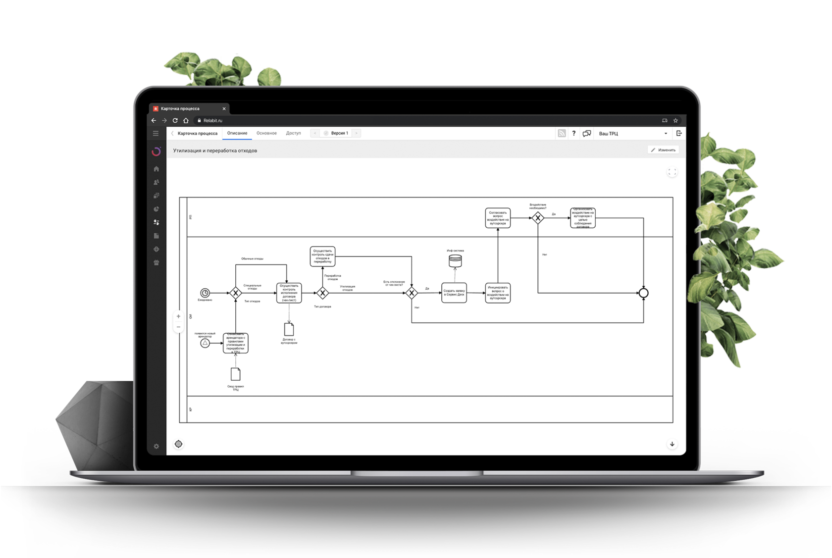 Интерактивная процессная модель, формирующая бизнес-логику компании в реальном времени. Используется графический язык BPMN.